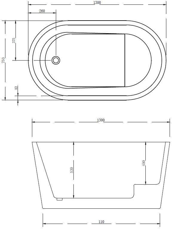 Акриловая ванна Abber AB9277 130x75x63 слив-перелив, стальной каркас