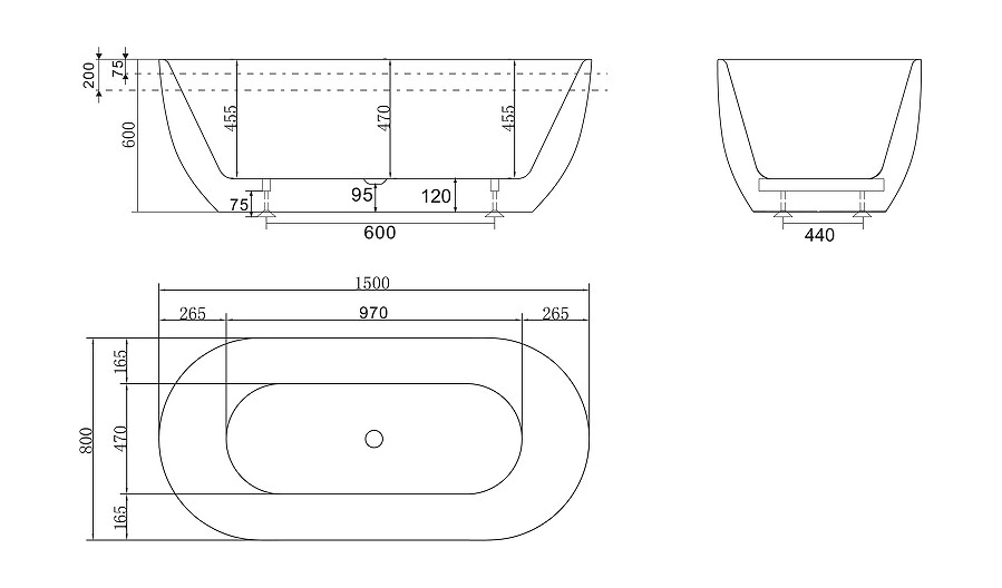 Акриловая ванна BelBagno BB70-1500-800-W/NM 150x80 черная-белая