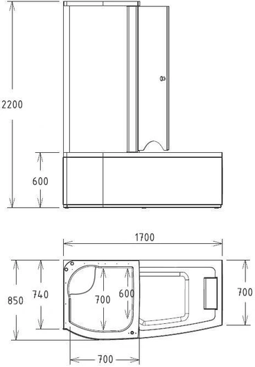 Акриловая ванна Gemy G8040 C 1700*850*2200 комплектация без гидромассажа