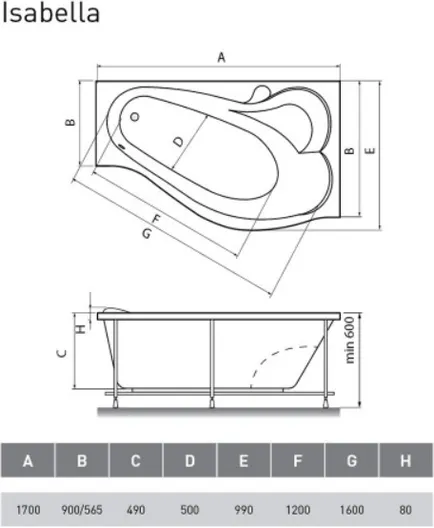 Акриловая ванна Relisan Isabella Гл000010530 170x90 правая УТ-00111087