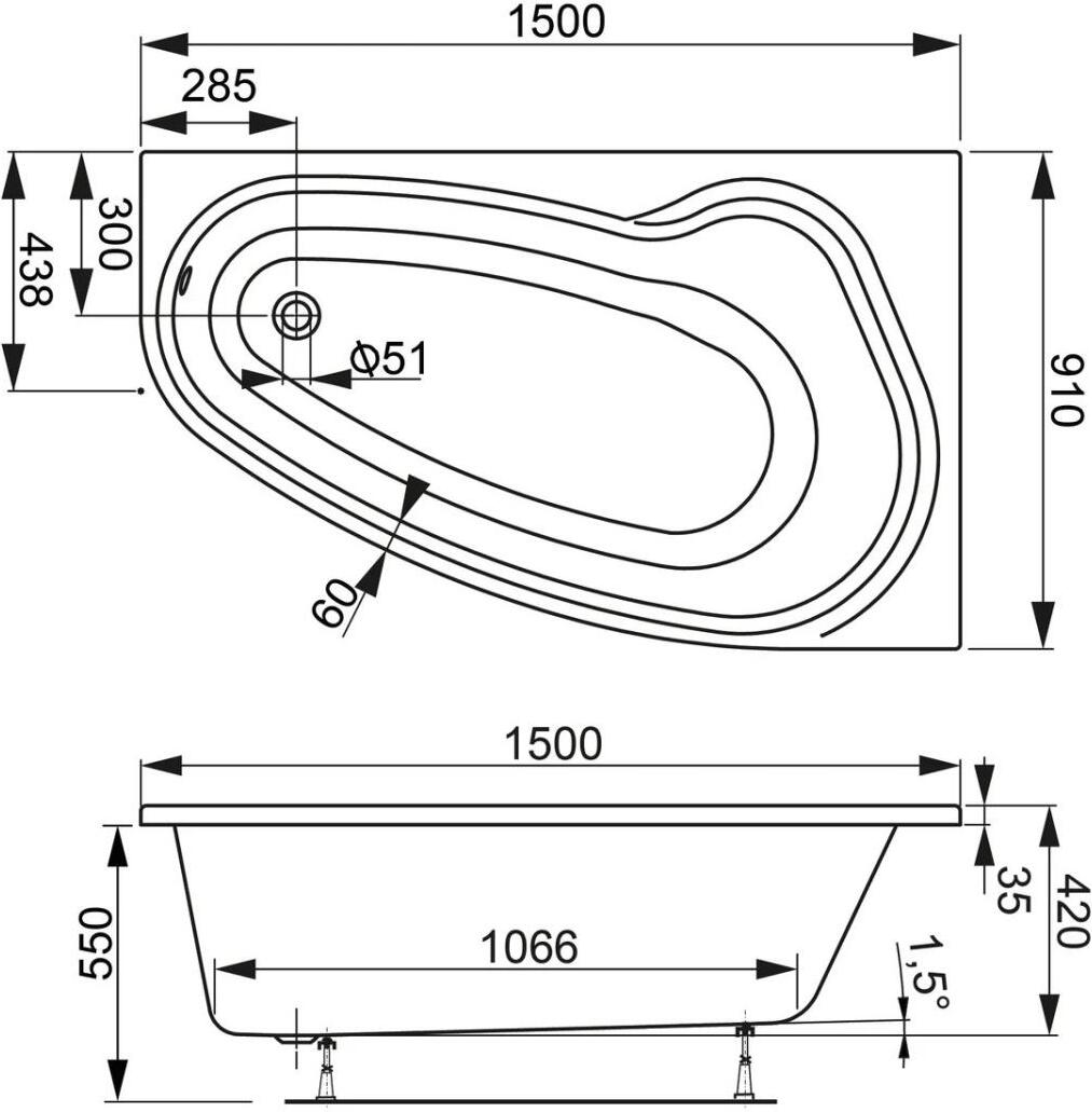 - Акриловая ванна - 1 шт. Инструкция - 1 шт.