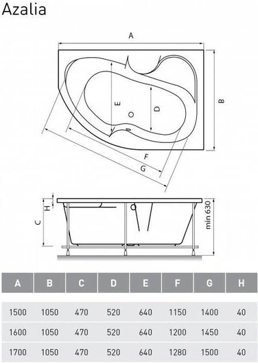 Акриловая ванна Vayer Azalia R 150x105 Гл000006725