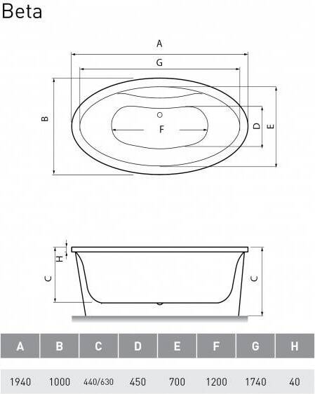 Акриловая ванна Vayer Beta 194x100 Гл000006828 УТ-00111273
