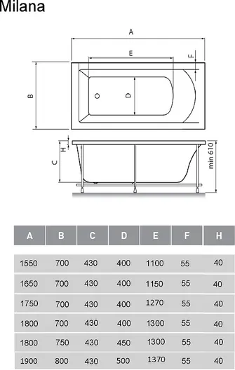 Акриловая ванна Vayer Milana Гл000025934 190x80