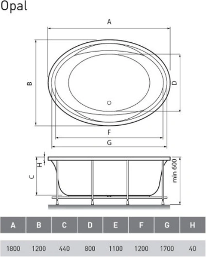 Акриловая ванна Vayer Opal Гл000006826 180x120