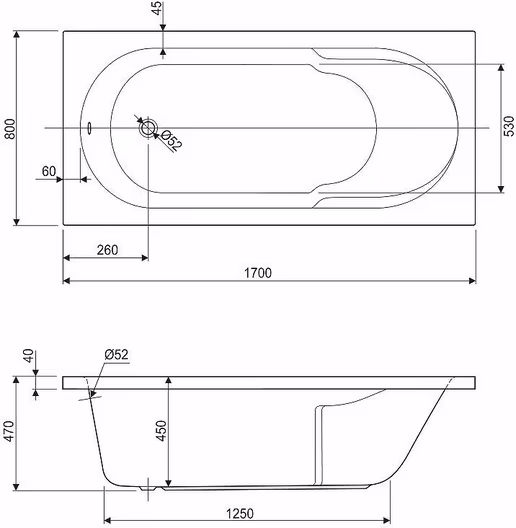 - Акриловая ванна - 1 шт. Инструкция - 1 шт.