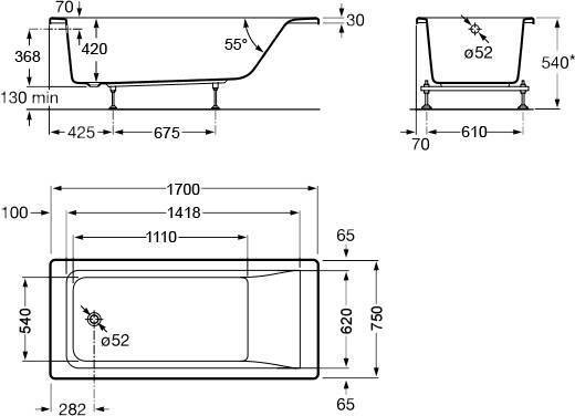 Акриловая ванна ROCA EASY ZRU9302899 прямоугольная 1700х750