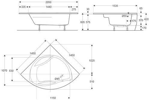 Акриловая ванна Jacob Delafon PRESQU'ILE E6045RU-00 угловая 145х145 см