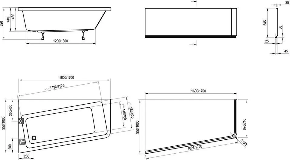 Акриловая ванна RAVAK 10° C831000000, 160х95 L, белая
