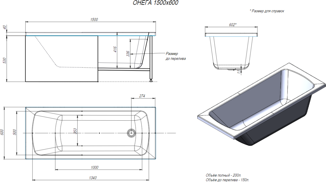 Акриловая ванна Alex Baitler Onega 150х60 УТ-00204337