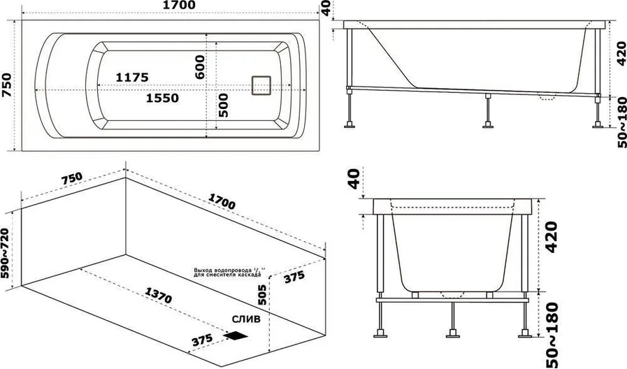 - Монтаж:на ванну