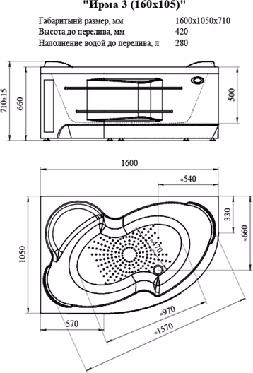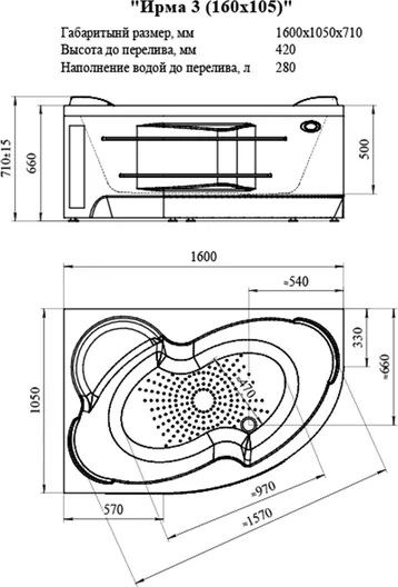 Акриловая ванна Radomir Ирма 2-01-0-2-1-229 160х105 правосторонняя, каркас УТ-00035971