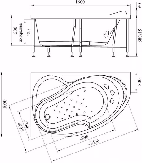 Акриловая ванна Radomir Амелия-комфорт-Chrome, 1600x1050, правая