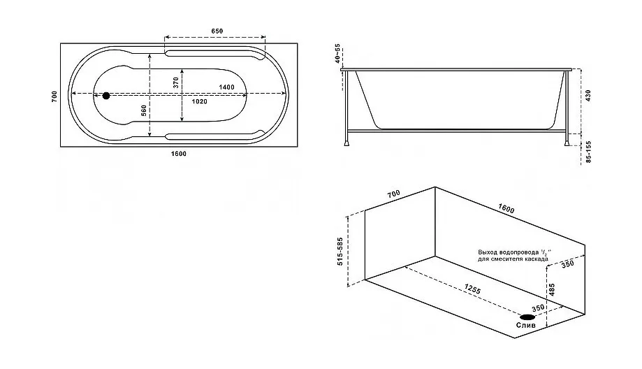- Акриловая ванна - 1 шт. Инструкция - 1 шт.