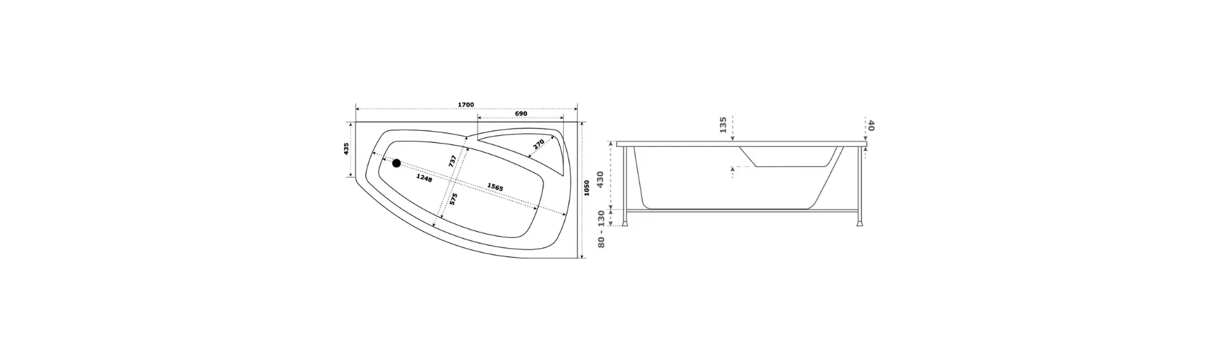 Акриловая ванна Bas Камея- Pro В А0122 170x105 R правая, с каркасом УТ-00127215