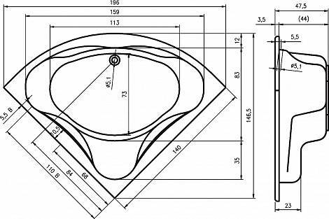 Чешская ванна RIHO NEO 140 140х140 относится к ваннам с формой - четверть круга, в то же время она просторная, вместительная и удобная. Ванна прекрасно подойдет для создания смелых и креативных дизайнерских решений в создание интерьера в Вашей ванной комнате.