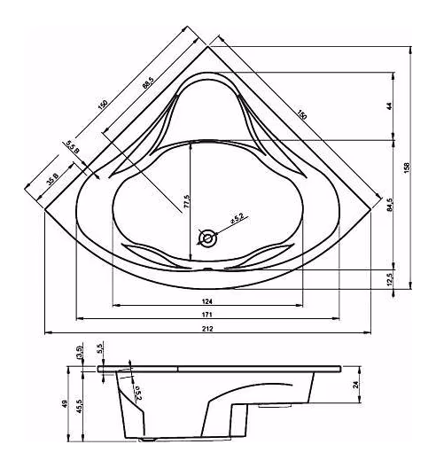 Чешская ванна RIHO NEO 150 150х150 относится к ваннам с формой - четверть круга, в то же время она просторная, вместительная и удобная. Ванна прекрасно подойдет для создания смелых и креативных дизайнерских решений в создание интерьера в Вашей ванной комнате.