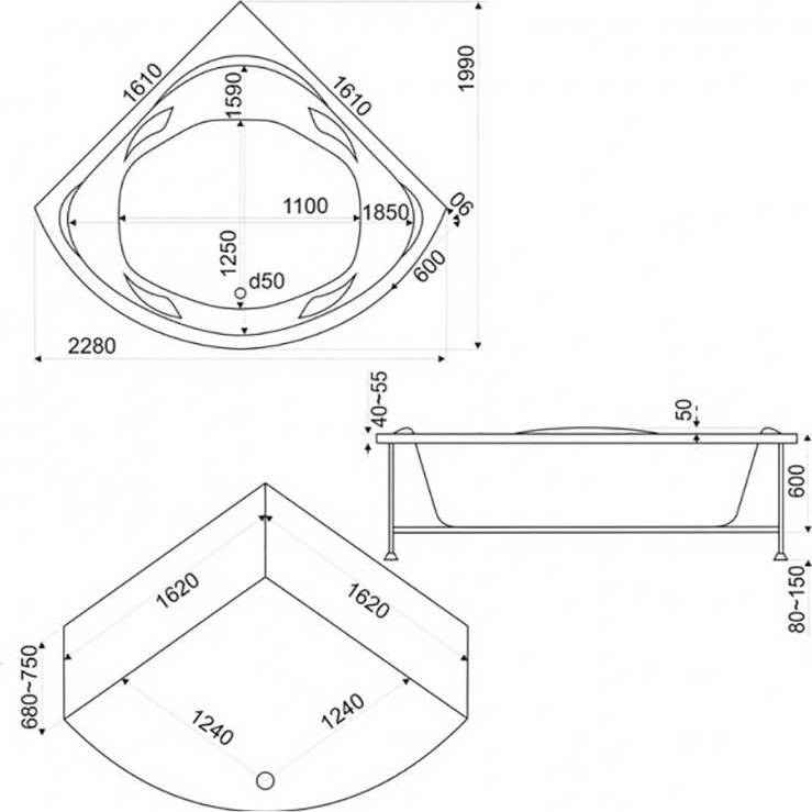 Ванна Bas Ривьера В 00029 на каркасе УТ-00007658