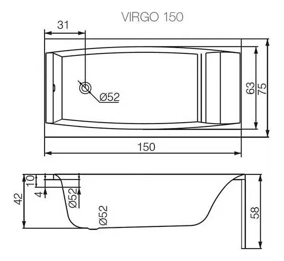 Акриловая ванна Cersanit VIRGO, P-WP-VIRGO*150, 150х75 прямоугольная