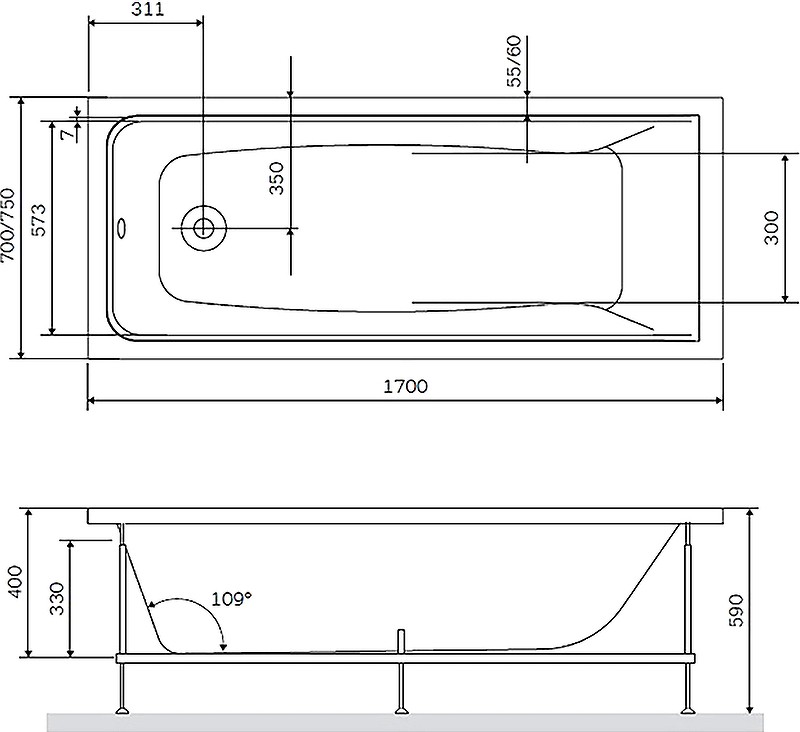 - Акриловая ванна - 1 шт. Инструкция - 1 шт.