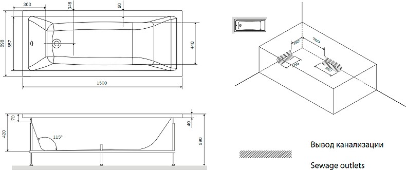 Акриловая ванна Am.Pm Gem W93A-150-070W-A 150х70