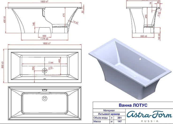 Ванна из искусственного камня Astra Form Лотус 01010036 185х85