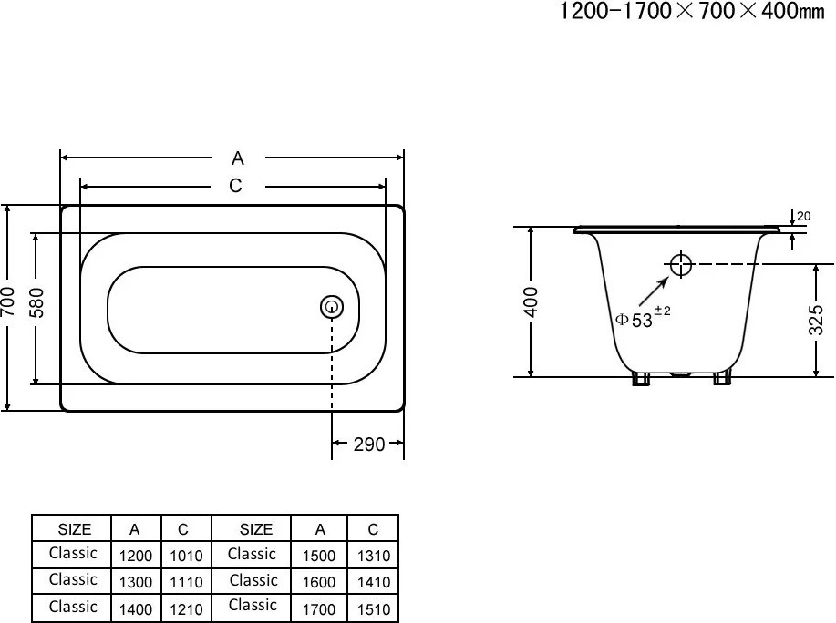 Ванна чугунная GOLDMAN 150x70x40, с ножками