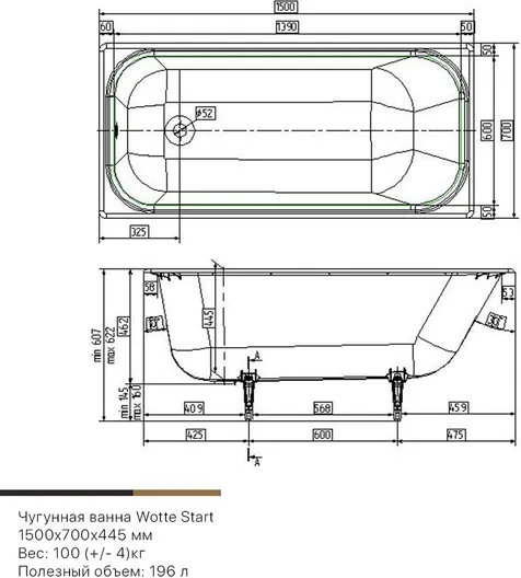 Чугунная ванна Wotte Start 150x70 УТ-00082874
