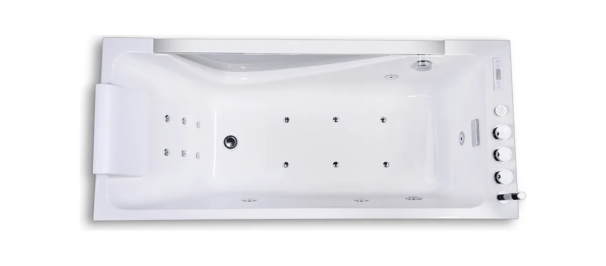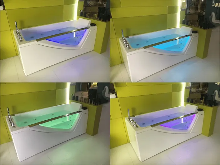 | Акриловая ванна с гидромассажем, аэромассажем, подсветкой. • Чистый акрил, цвет белый • Сварной каркас из нержавеющей стали • Гидромассаж: 6 спинных форсунок, 3 боковых форсунки, 1 форсунка в зоне ног • Аэромассаж: 6 донных форсунок • Встроенный смеситель с ручным душем, излив водопад • Декоративное прозрачное стекло • Электронная панель управления: LED подсветка «Colorful Light»( хромотерапия), FM радио, bluetooth • Система подогрева воды CTCS • Датчик уровня воды • Эргономичная форма дна, 1 белый подголовник |