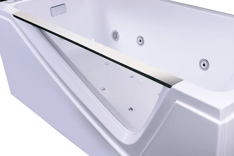 - Ванна 1 шт. Каркас 1 шт. Экран 1 шт. Боковой экран 1 шт. Система гидромассажа 1 шт. Система аэромассажа 1 шт. Хромотерапия 1 шт. Подводная подсветка 1 шт. Система дезинфекции 1 шт. Слив-перелив 1 шт. Пульт управления на ванне 1 шт. Смеситель 1 шт. Подголо