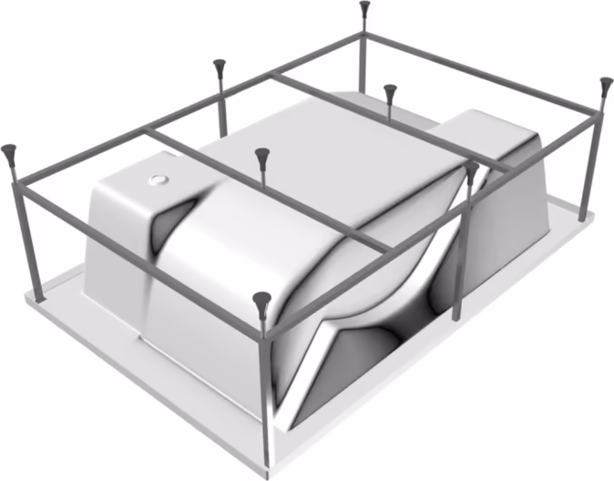 Все ванны комплектуются российским, металлическим каркасом с порошковым окрасом, усиленной прочности с удобным креплением.