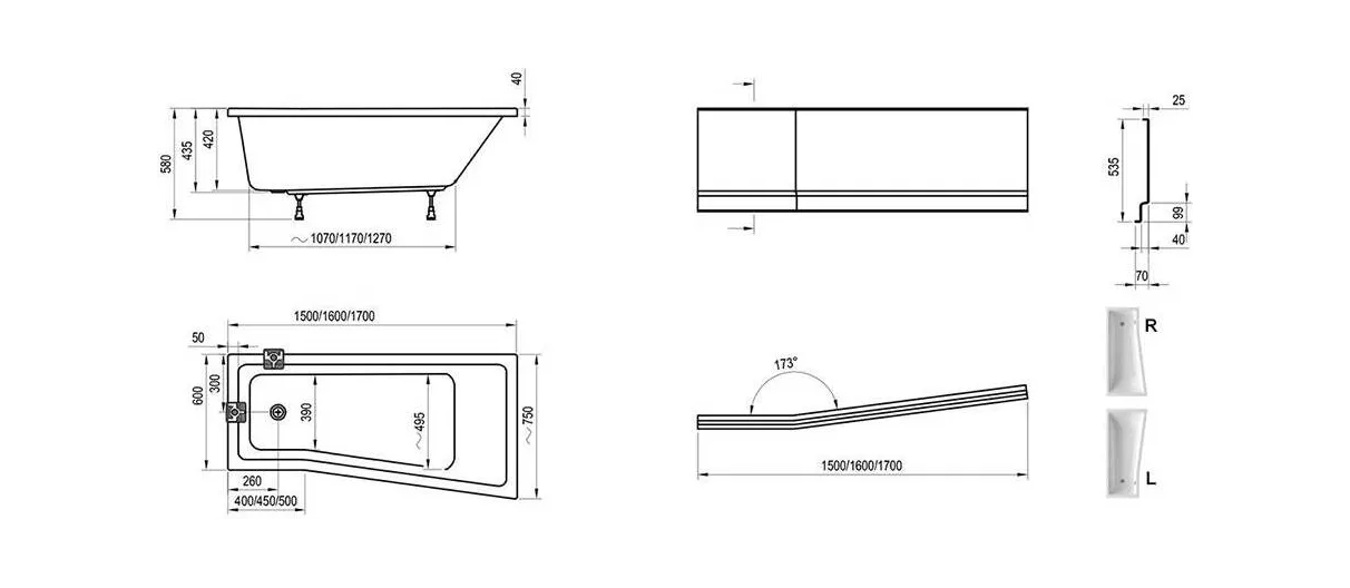 Комплекты, в состав которых входит «Фронтальная панель Ravak BE HAPPY II 170 L, CZ94100A00, для ванны, белая»