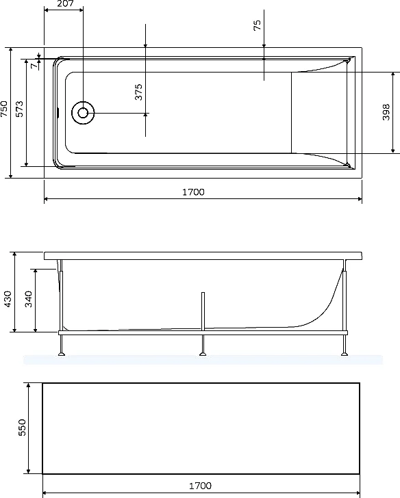 Фронтальная панель Am.Pm Gem W90A-170-070W-P 170 для ванны УТ-00160813