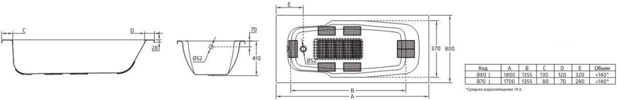 - Монтаж: на ванну