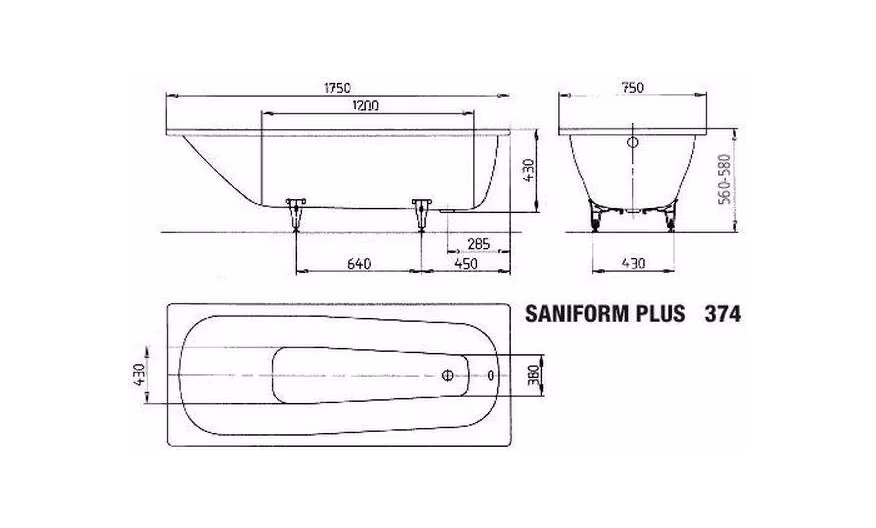Ванна стальная Kaldewei Saniform 112200010001, модель 374, 175х75, белый