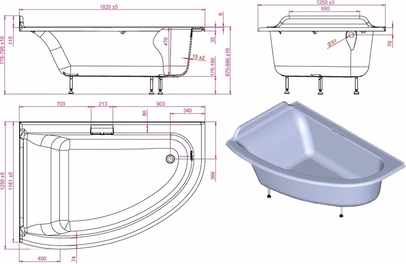 - Тип ванны: