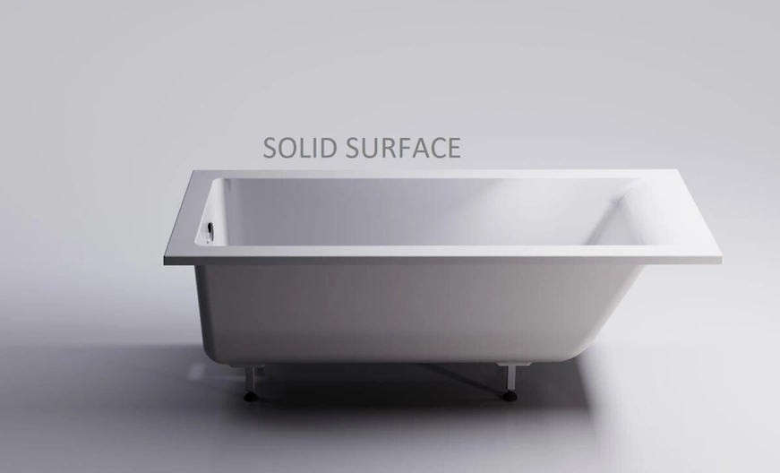 - Solid Surface - композитный материал изначально белого цвета на всю толщину изделия, нанесение защитного покрытия не предусмотрено. Обычно, имеет матовую поверхность. Возможна реставрация.