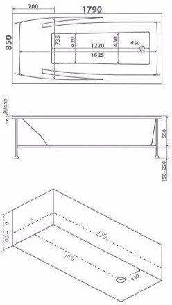 Гидромассажная ванна BAS Эвита 180x85 Flat