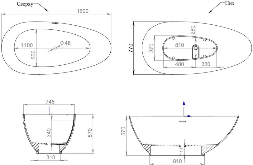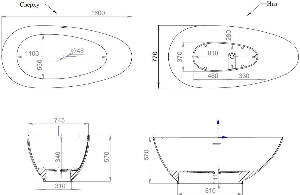 Ванна из литьевого мрамора Salini Paola 160х77 101511G глянец