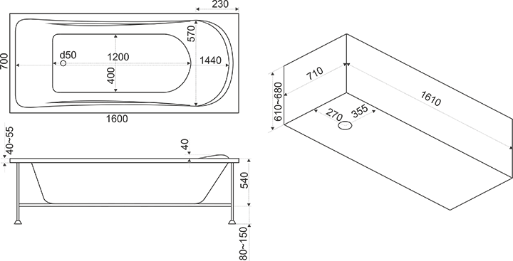 Гидромассажная ванна BAS СТАЙЛ ВГ00223 160х70