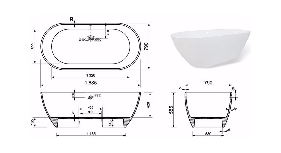 - Ванна из искусственного камня - 1 шт. Инструкция - 1 шт.