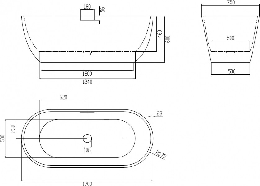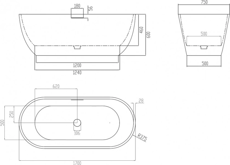 Ванна из искусственного камня Abber Frankfurt AM9941B 170x75 черная УТ-00158076