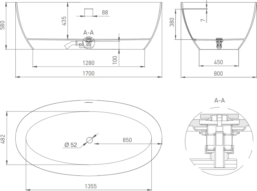 Ванна из искусственного камня Salini Alda 101922M S-Stone 170x80 матовая УТ-00142549