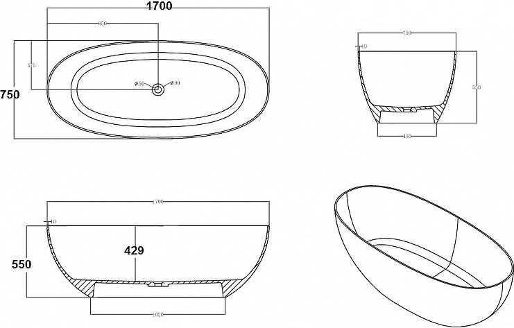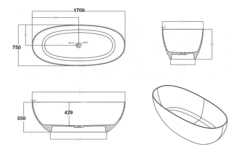 - Ванна из полиэфирной смолы - 1 шт. Донный клапан - 1 шт. Инструкция - 1 шт.
