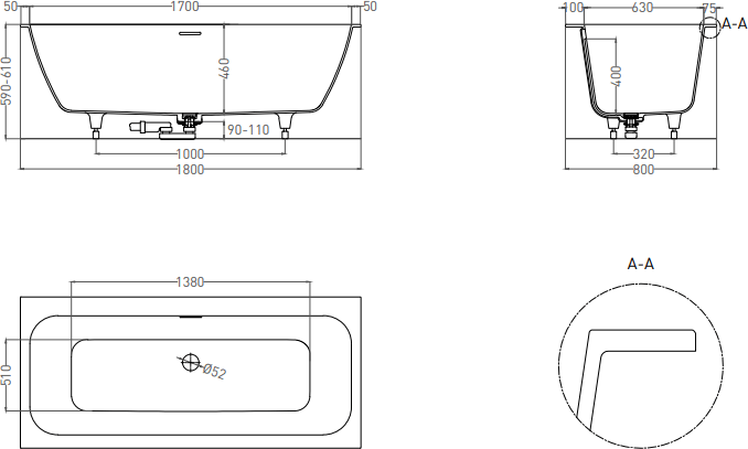 Для наглядности представляем вам, как выглядит ванна из материала S-Sense в разрезе: