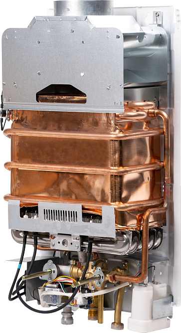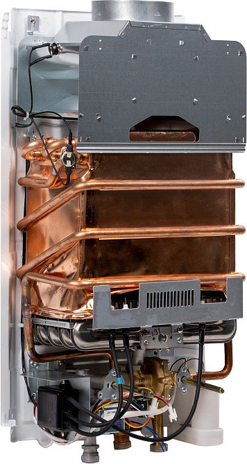 Автоматический розжиг обеспечивает бесшумное включение прибора. Встроенная электроника осуществляет контроль за работой водонагревателя, что повышает удобство и безопасность эксплуатации.