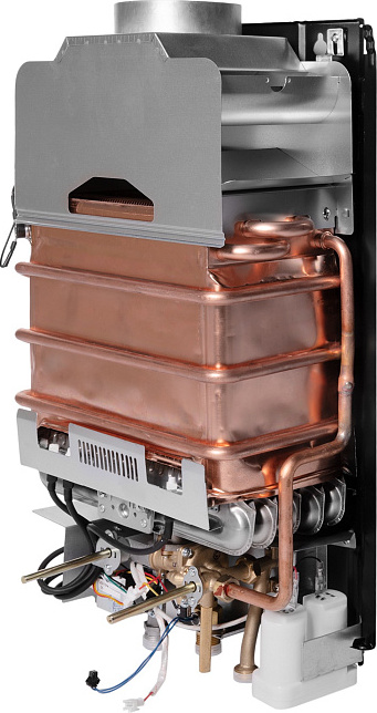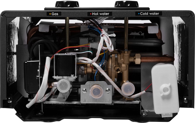 Автоматический розжиг обеспечивает бесшумное включение прибора. Встроенная электроника осуществляет контроль за работой водонагревателя, что повышает удобство и безопасность эксплуатации.