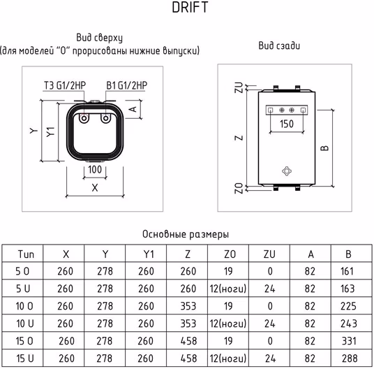 Водонагреватель накопительный (бойлер) Thermex Drift 15 O 151 132 УТ-00076315