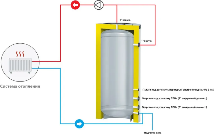 Описание: - Бак предназначен для аккумулирования тепла от электротэнов, которые размещаются в отверстия