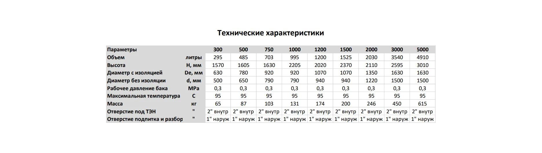 шт. На внешней стороне бака расположены шпильки для крепления шкафа управления электрическими ТЭНами. По